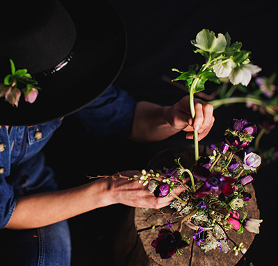 Elle ne suit pas les tendances du marché mais elle écoute la nature, observe les formes et les couleurs qui se dessinent au fil des saisons. C’est ainsi qu’elle créé des compositions qui respirent la vie, des tableaux éphémères qui émeuvent les cœurs.